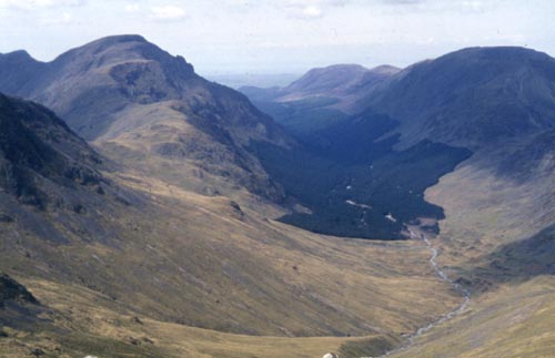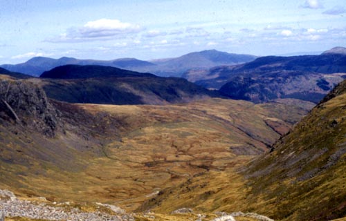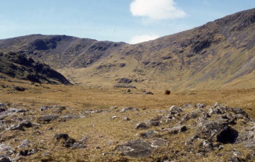 | The same hanging valley but looking up into it.The route up to Great Gable passes through this valley.(168K) |