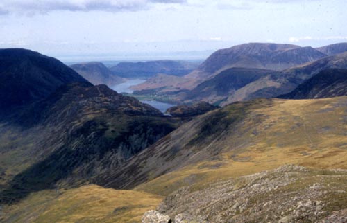 | A view of a ribbon lake off Great Gable - Buttermere? (96K) |